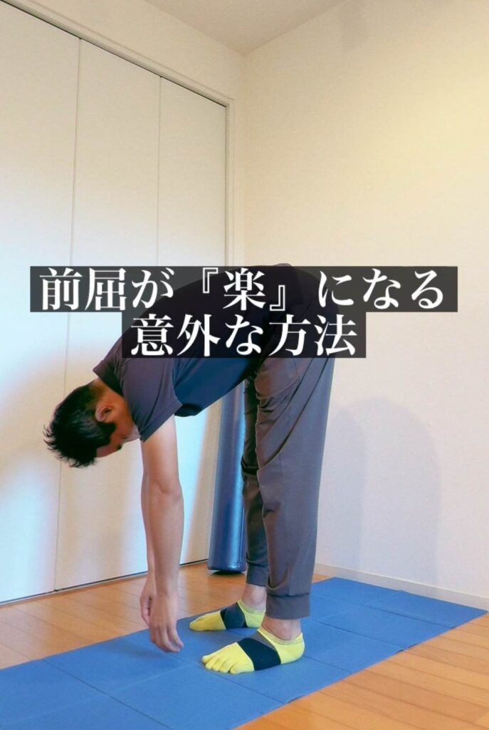 前屈は身体の状態を探るのにとても良い動作です。一般的には、ハムストリングスや下腿三頭筋などの脚の後ろ側の筋肉が硬くなっていると制限を受けやすく、床に届かなくなります。