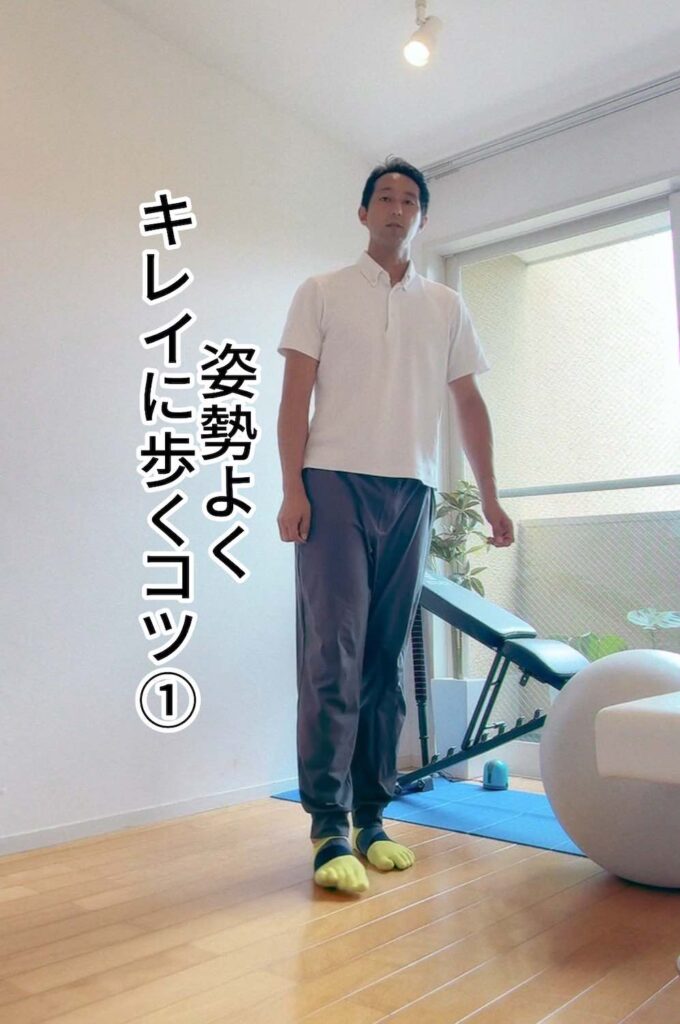 片脚でまっすぐ立てると、キレイに歩けるようになります。