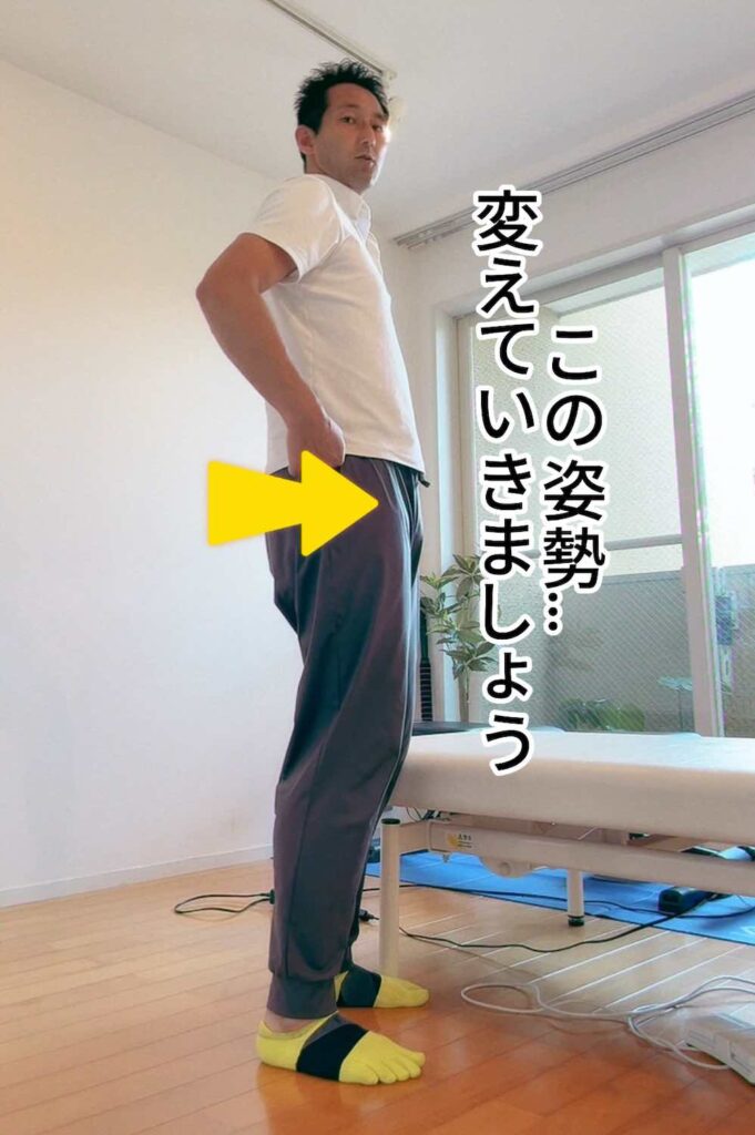 この姿勢が癖になると、股関節から変えるのは難しい。