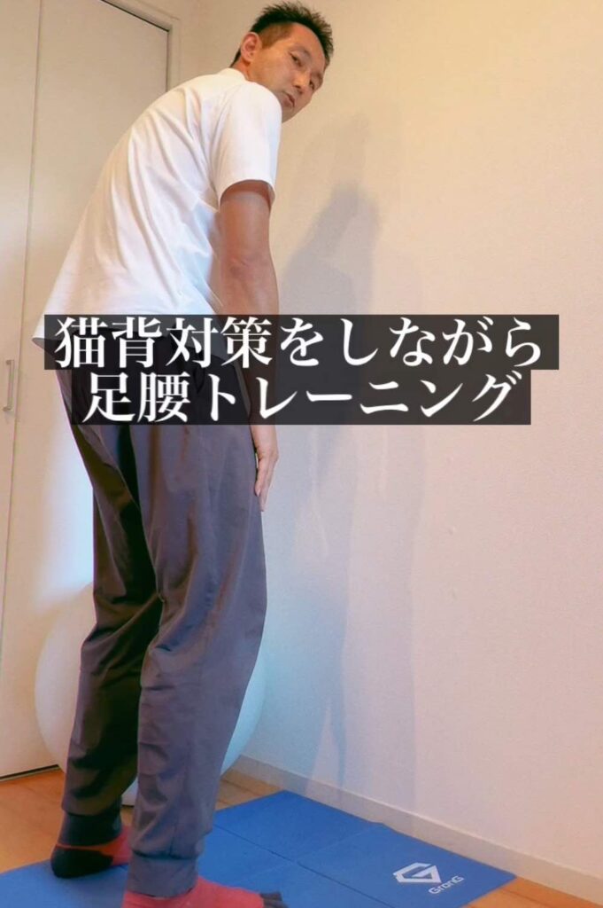 ですが、最終的には繋げる必要があります。そこで、壁を使って猫背を修正しながら足腰を強くする運動を紹介いたします。