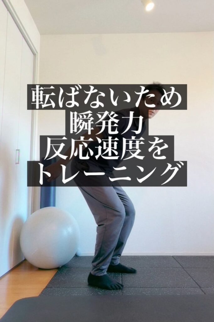 「10cmの台から飛び降り、着地と同時にジャンプしてタオルを飛び越える。