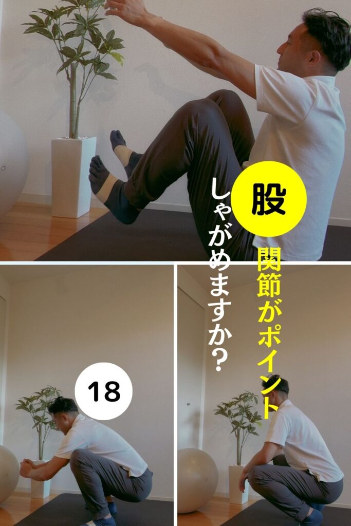 踵とをついてしゃがむには「股関節の柔軟性」 18日目】