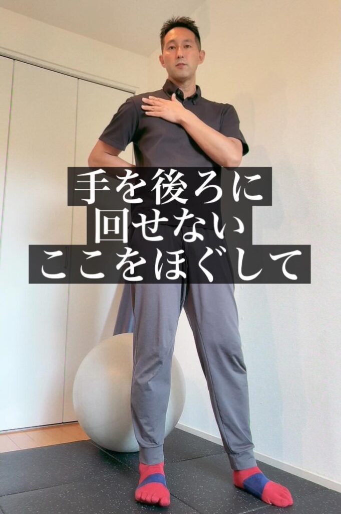 手が後ろに回らないということは、肩関節の回旋機能が落ちているサイン。