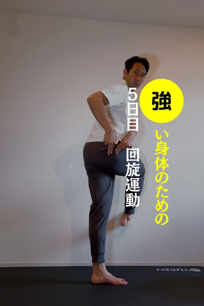 5日目は、動きを出した「回旋」それをコントロールする筋肉を鍛えていきましょう。