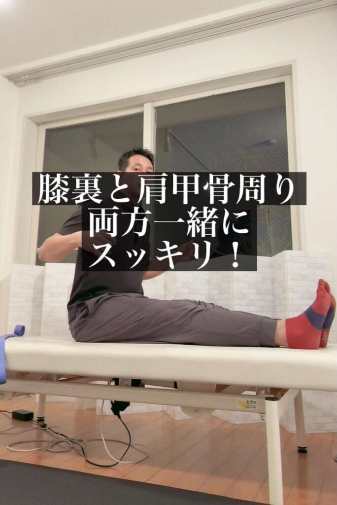 チューブを引くことで、膝裏がじんわり伸びてきます。