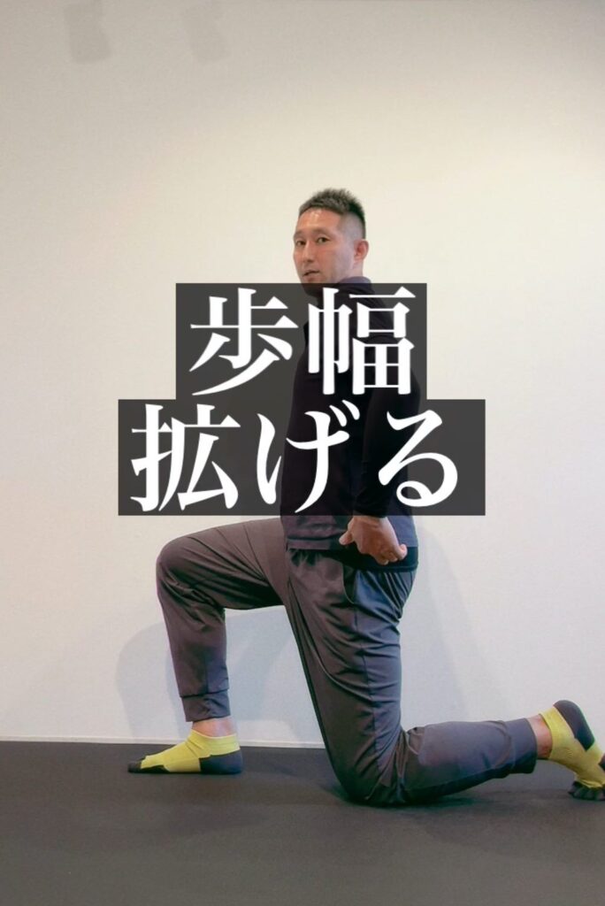 片膝立ちで、太ももの前を伸ばす際は「膝が曲がっている状態」
