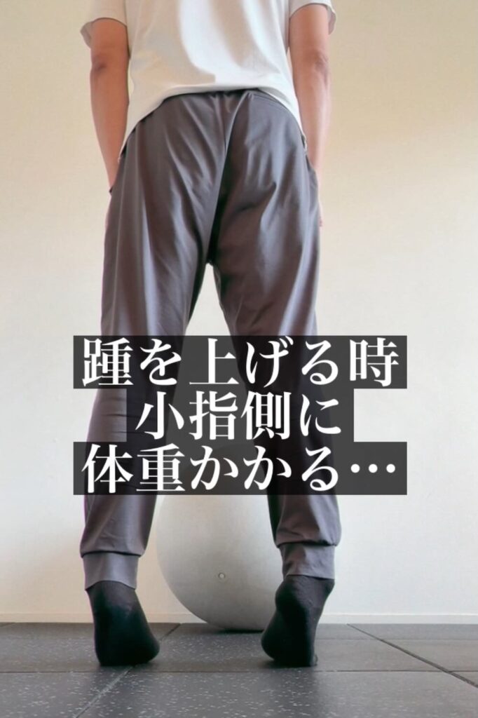 小指重心で歩くと、ふらついたり、足が外側に流れたりして