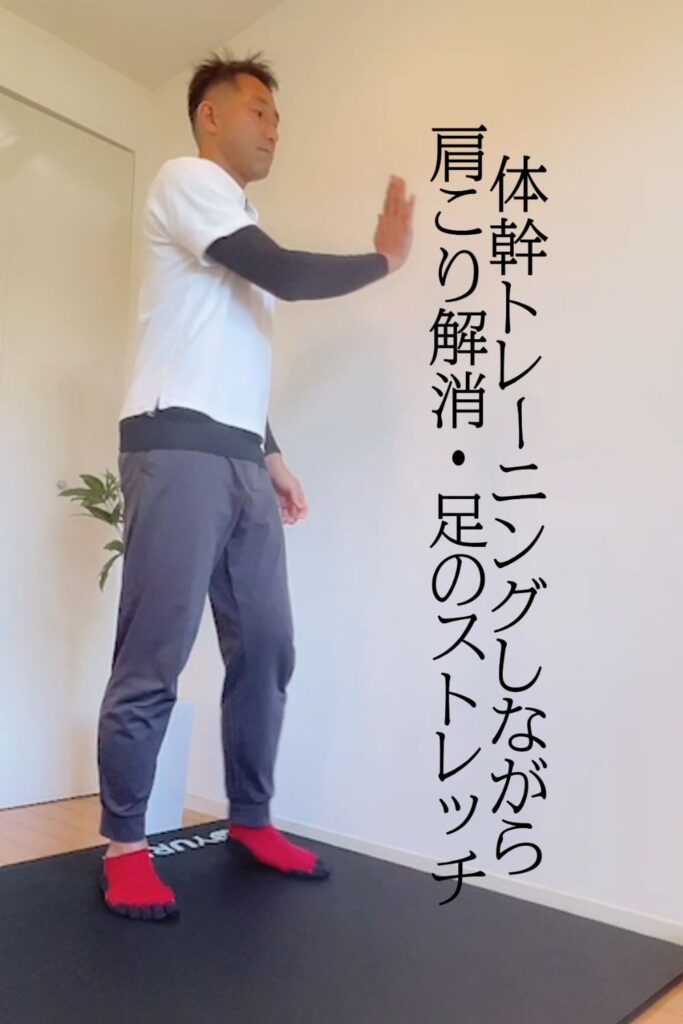 壁を使うと、ちょっと難しめの運動を簡単に行うことができます。