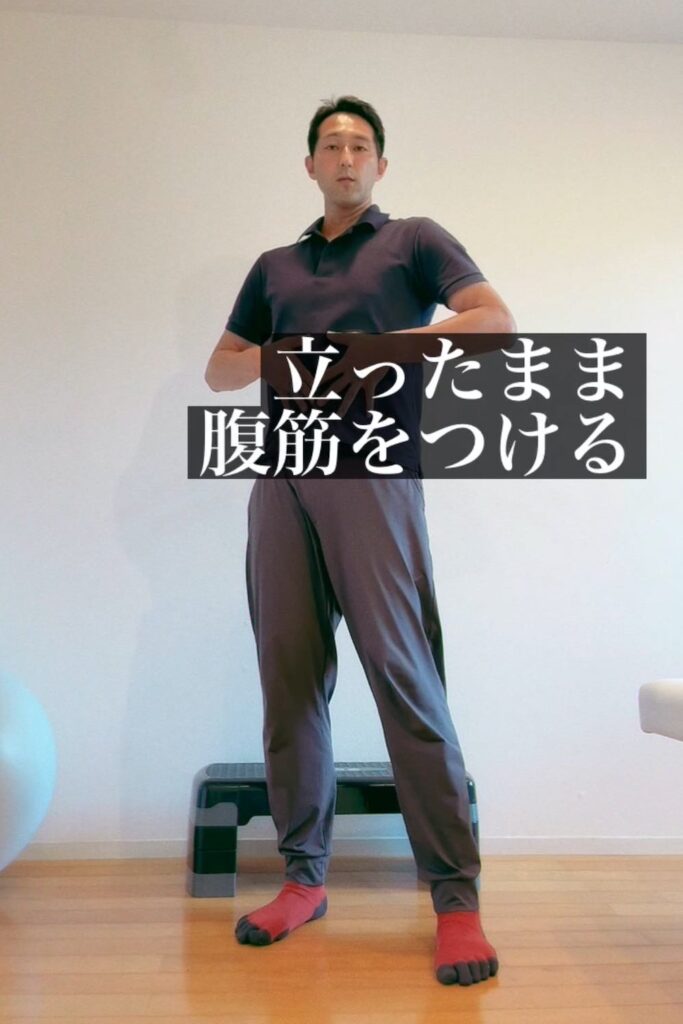 腹筋運動は、立ったままでもトレーニングできます。